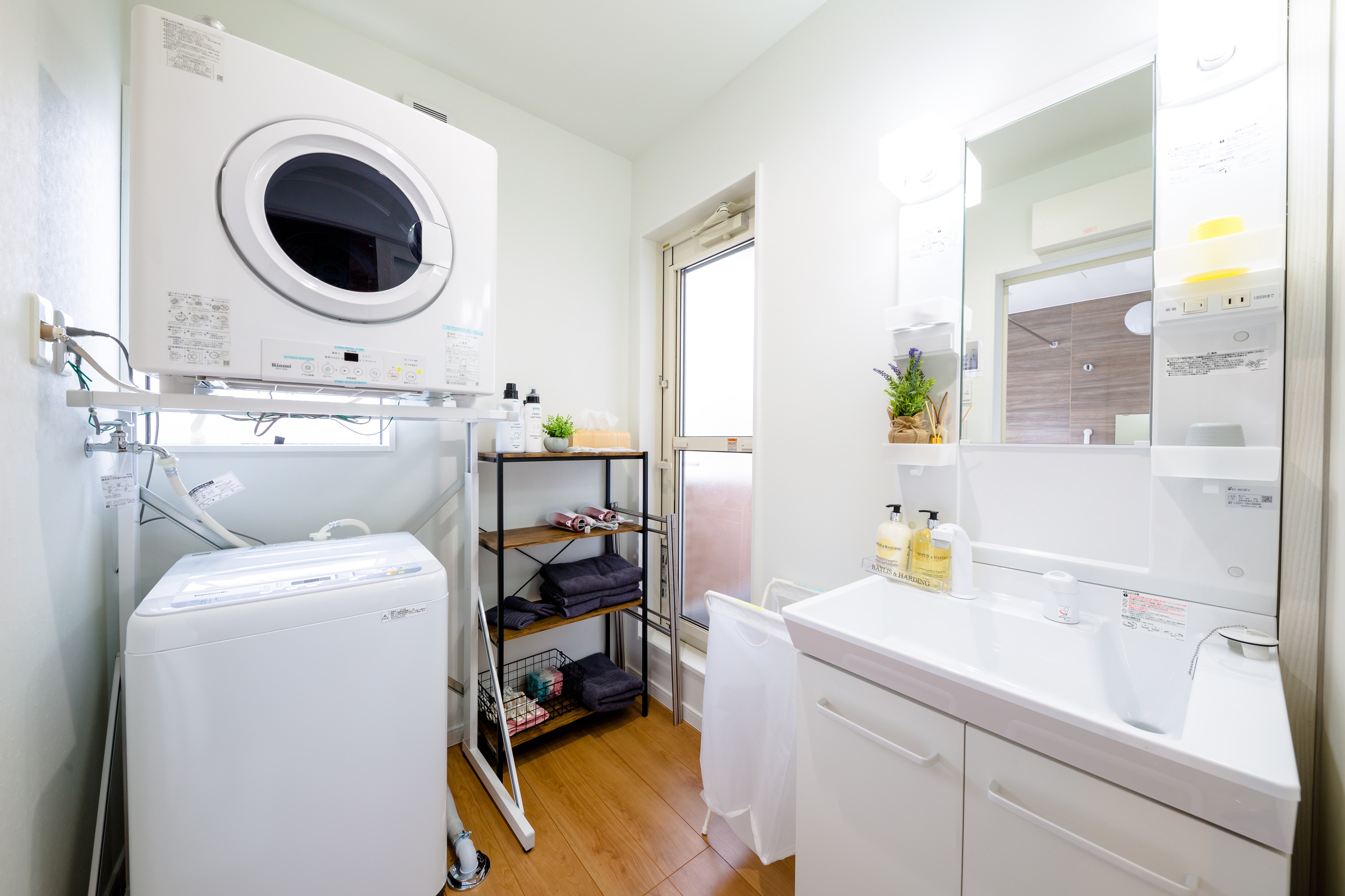 洗濯機も完備しております。洗剤もございますので、長期滞在にも快適にお過ごしいただけます。乾燥機ございますので、乾燥にもご利用ください。