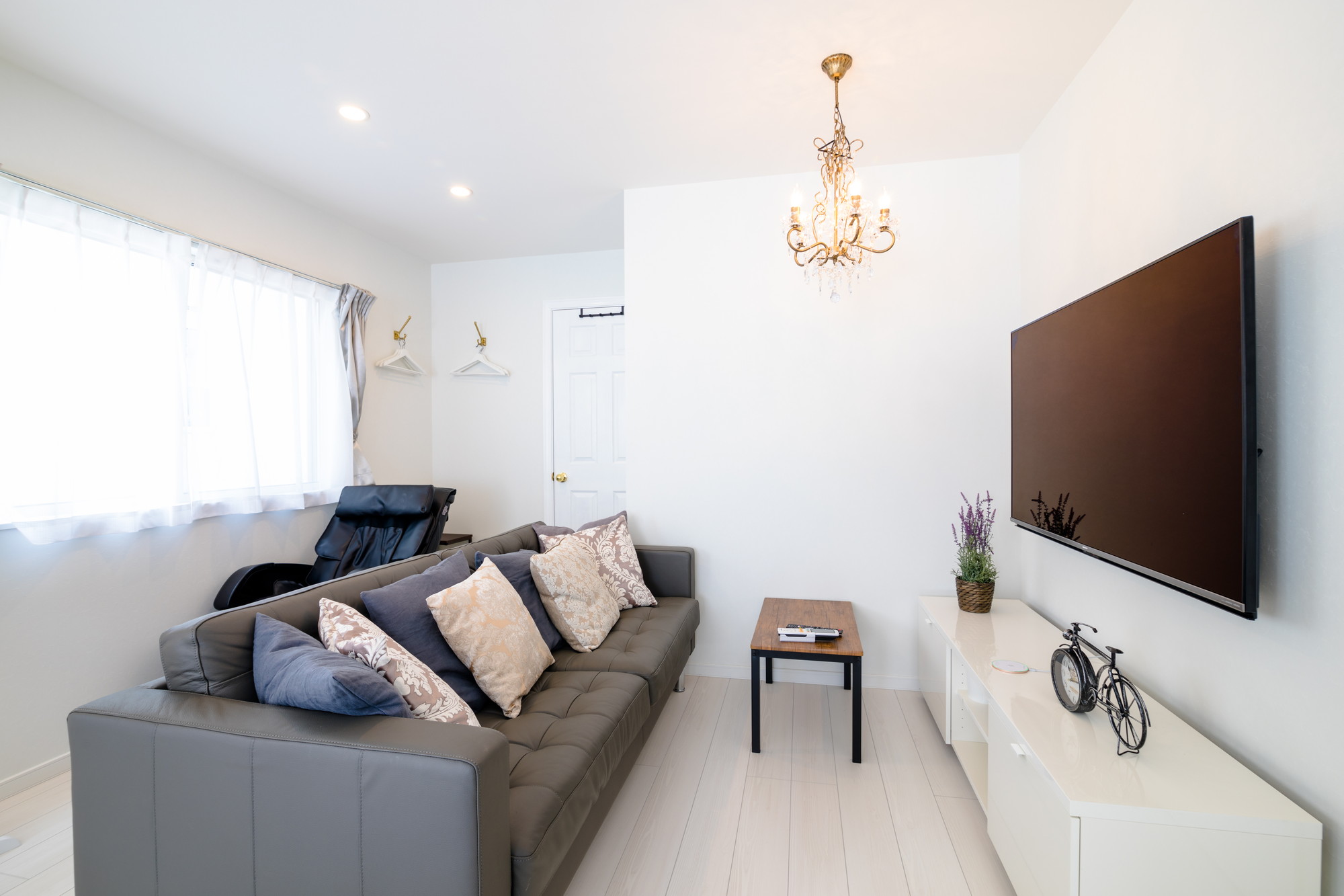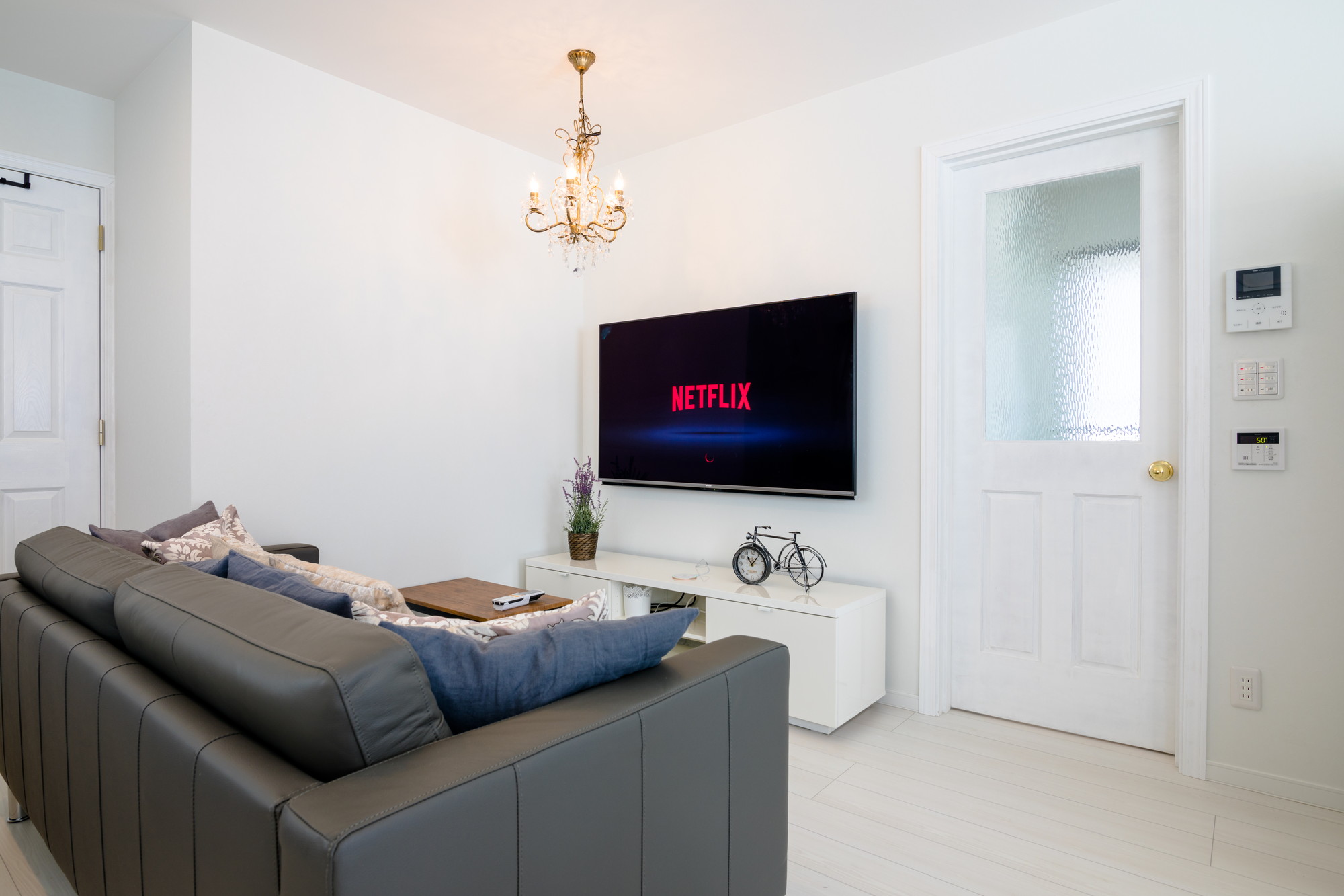快適なソファで60インチの大画面TVでNETFLEXをお楽しみいただけます。Netflexは、世界で人気の映像配信サービスで映画やドラマなどお楽しみいただけます。