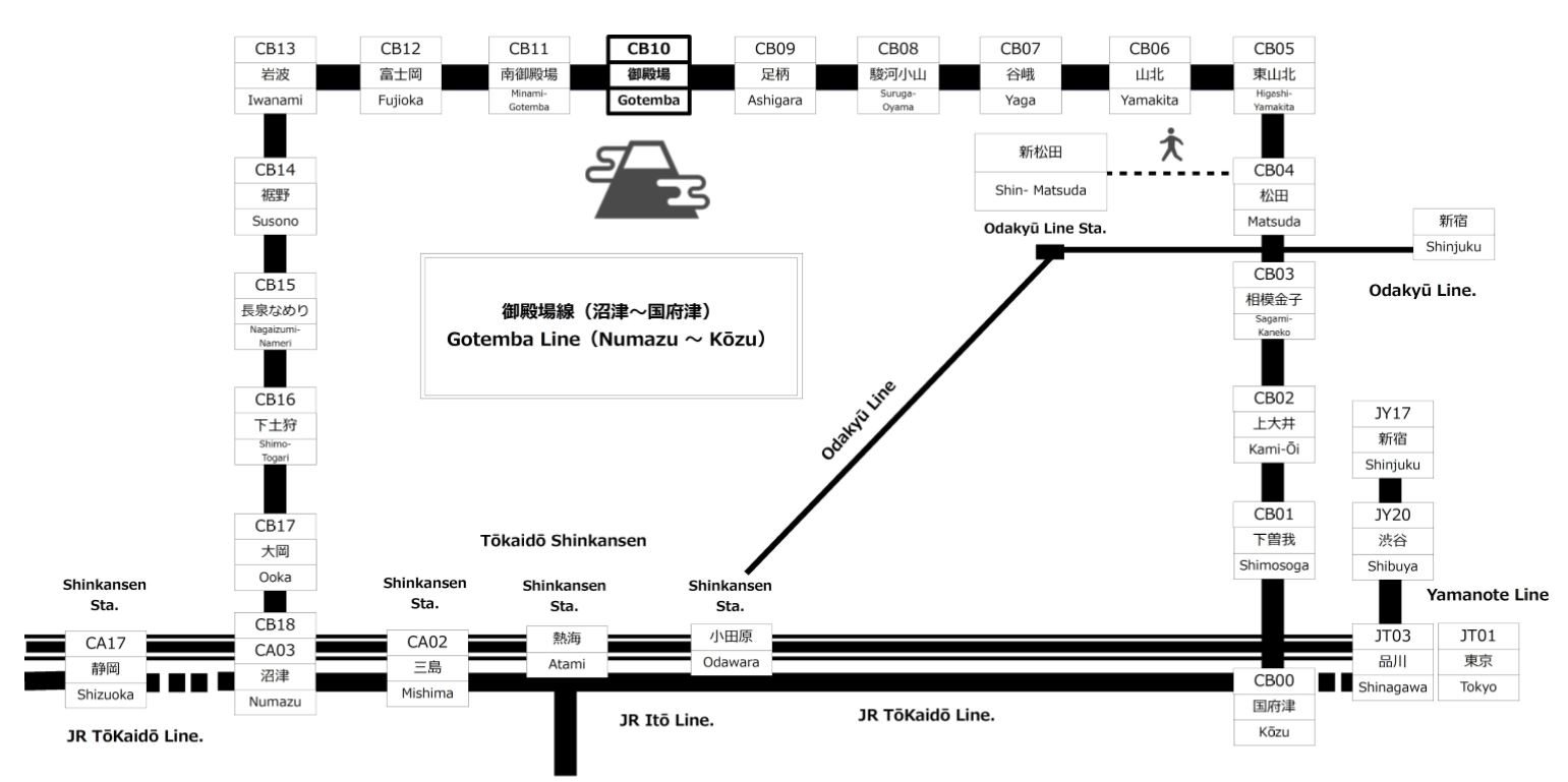 | 箱根桃源台 | 小田急箱根高速バス | 約40分/¥960 | 東名御殿場 | 徒歩8分 |