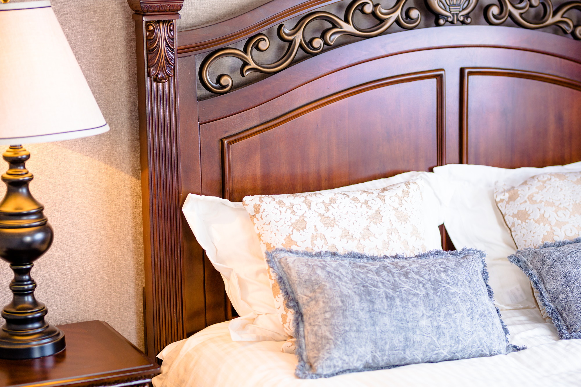 大人気家具ブランドアシュレイのクイーンサイズベットと棚がきらりと光る寝室からは富士山が眺望いただけます。